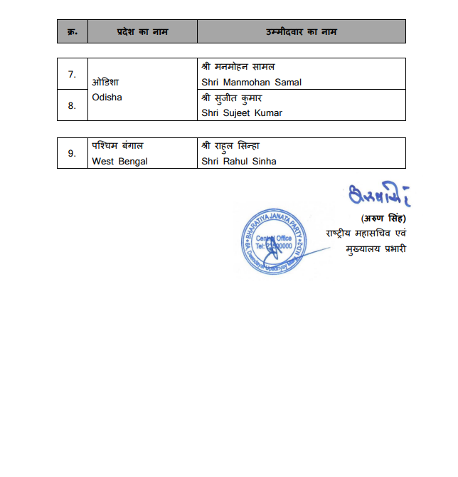 पार्टी ने असम से तेराश गोवाला और जोगेन मोहन को मैदान में उतारा है। दोनों नेताओं ने राज्य की राजनीति में अहम भूमिका निभाई है। असम में तीन राज्यसभा सीटों के लिए चुनाव हो रहे हैं। BJP ने ओडिशा से मनमोहन सामल और सुजीत कुमार को टिकट दिया है। राज्य में BJP की सरकार होने की वजह से BJP की स्थिति मजबूत मानी जा रही है।