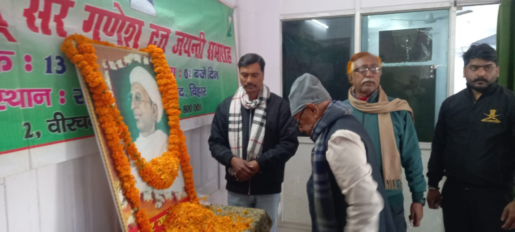 इस अवसर पर सर गणेश दत सिंह के तैलचित्र पर माल्यार्पण करने वालों में प्रदेश राजद के मुख्य प्रवक्ता श्री शक्ति सिंह यादव, प्रदेश प्रवक्ता एजाज अहमद, पूर्व विधायक डॉ अनवर आलम,प्रदेश महासचिव श्री निर्भय कुमार अंबेडकर, श्री मदन शर्मा, श्री प्रमोद कुमार राम, श्रीमती मुकुंद सिंह, श्री हरेंद्र कुमारकुशवाहा,श्री संजय यादव, श्री महेंद्र प्रसाद विद्यार्थी, श्री कुमर राय ,राजेश पाल, श्री उपेंद्र चंद्रवंशी, श्री गणेश कुमार यादव,श्री शिवेंद्र तांती, श्री बिंदन यादव, श्री अरविंद कुमार सिंह,श्री ओमप्रकाश पासवान, अक्की यादव सहित अन्य गणमान्य नेतागण उपस्थित थे।