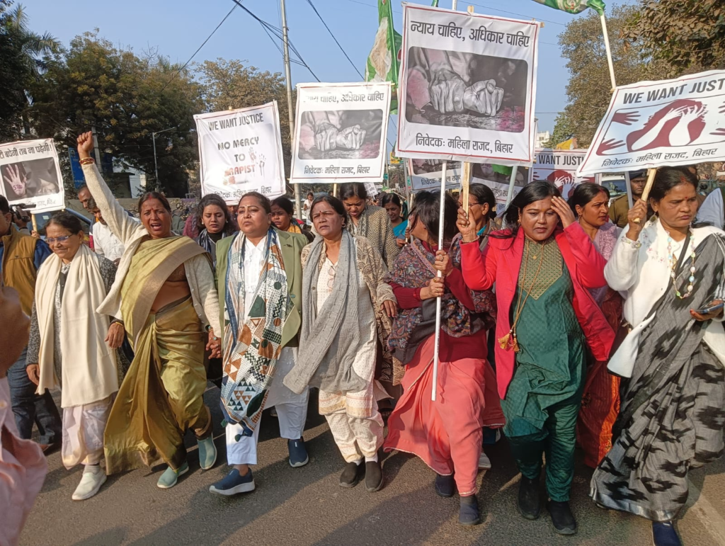 RJD: Patna: बिहार प्रदेश राष्ट्रीय जनता दल महिला प्रकोष्ठ (Bihar Pradesh Rashtriya Janata Dal Women’s Cell) की ओर से पटना सहित राज्य के विभिन्न जिलों में महिलाओं के साथ हो रहे अत्याचार व्यभिचार ,बलात्कार और हत्याओं की घटनाओं के विरोध में और राज्य सरकार तथा शासन – प्रशासन की बलात्कारी और अपराधियों को बचाने वाली भूमिका के विरोध में आक्रोश मार्च निकाला गया।